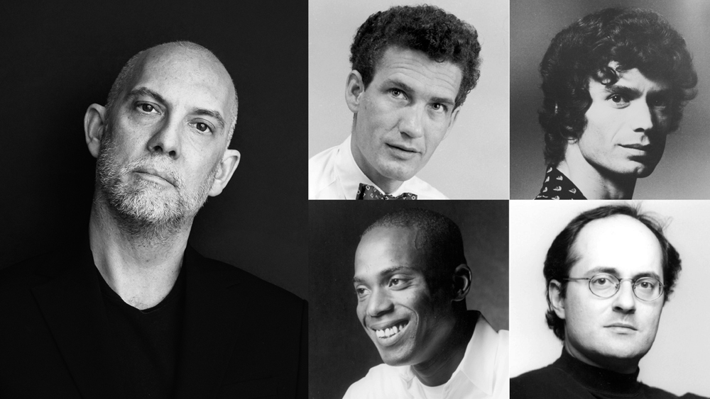 Left: David Dawson. Photo by Karolina Kuras. Right, clockwise from top left: Grant Strate (1956). Photo by Ken Bell. Constantin Patsalas (1975). Photo by Anthony Crickmay. James Kudelka (1993). Photo by Michael Slobodian. John Alleyne (1998). Photo by David Cooper.