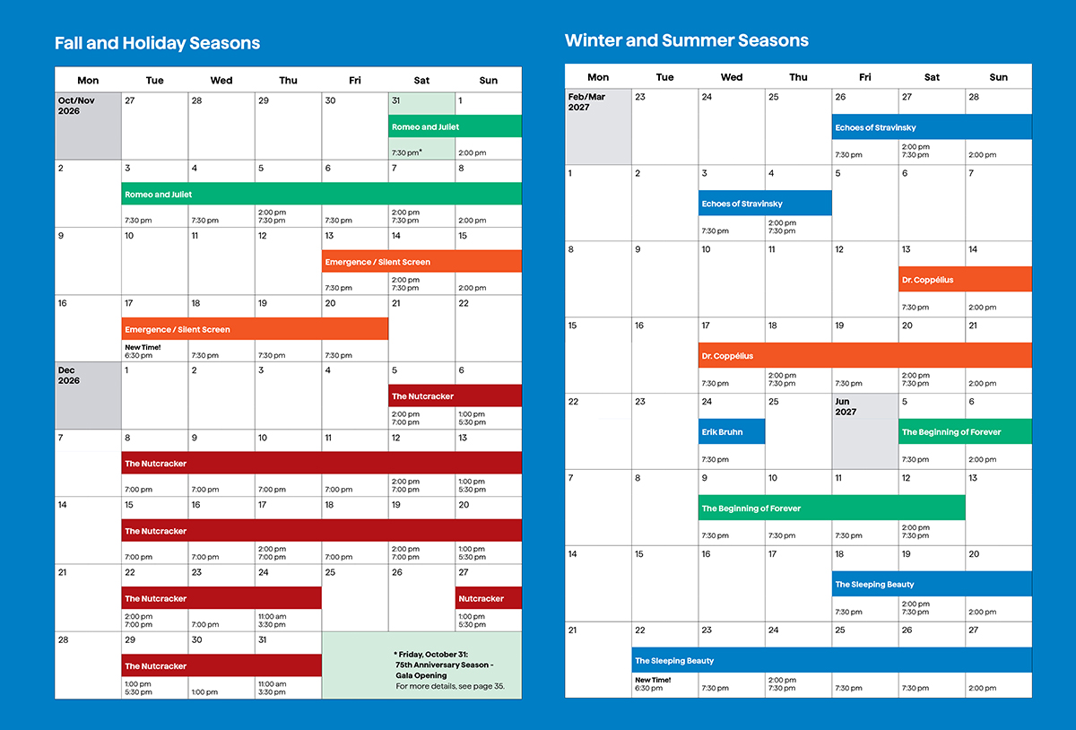 - Select any performance from the 2026/27 season calendar including The Nutcracker